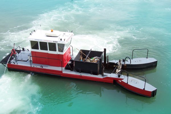 Environmental Algae Debris Removal Scavenger Vessels. At the heart of the Scavenger Vessel is the OxyPlus™ advanced water decontamination system. When oxygen is injected into polluted water, the enrichment contributes directly to reducing contaminants suspended in the water. With the addition of ozone to the aeration process a very powerful yet environmentally safe disinfection occurs in the body of water being treated by the Scavenger Vessel™.